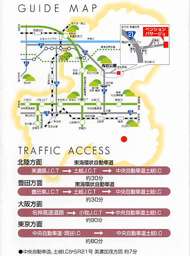 美濃加茂方面R21へ左折して鬼岩温泉パサージュまで10分!